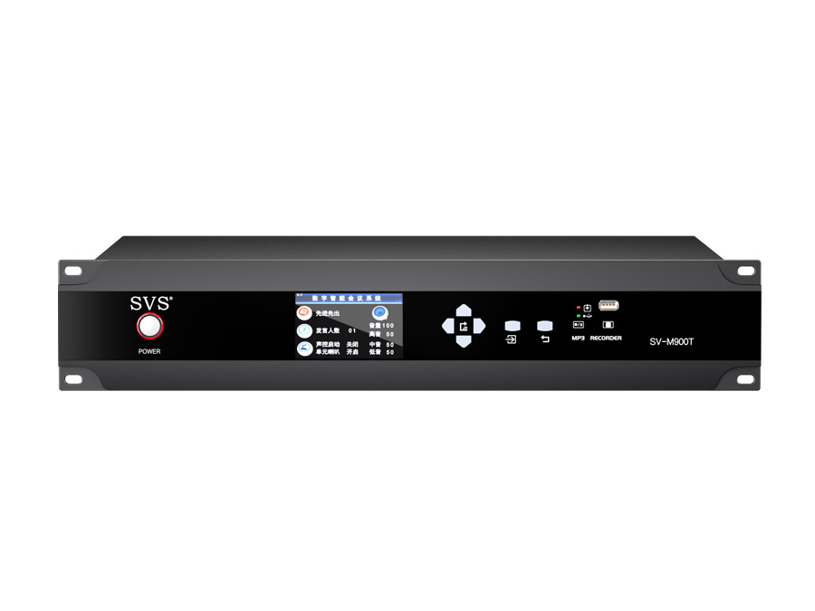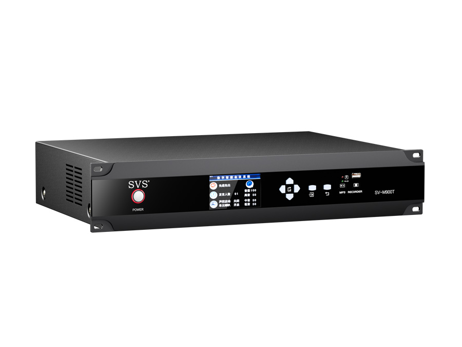 智能數字會議系統主機,集合會議討論、攝像跟蹤、發言計時等功能為一體;采用高保真數字語音處理,平衡式音頻輸出;支持多種會議模式:智能限制、先進先出、智能申請、開放模式、限時發言、主席專用等模式;內置高、中、低音3段均衡調節和話筒總音量調節;支持聲控啟動話筒進行發言功能及門限級別可調節等。