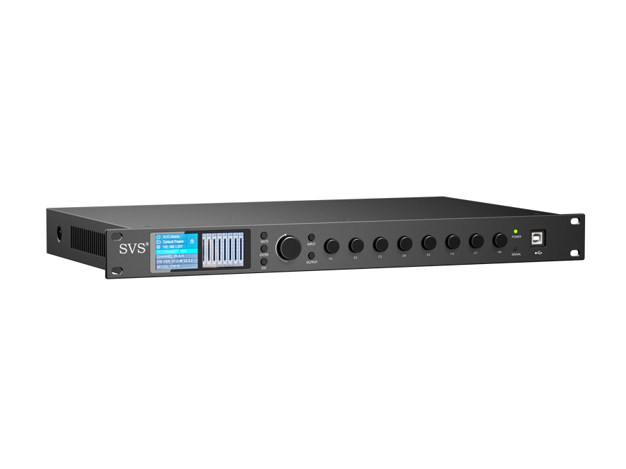專業(yè)數(shù)字音頻媒體矩陣,可滿足各種大、中、小型專業(yè)音頻系統(tǒng)使用;支持多路MIC/ Line輸入,多路平衡式輸出;帶自動(dòng)混音和矩陣混音功能,具有強(qiáng)大的DSP處理能力;輸入通道均支持MIC輸入、線路輸入,支持48V幻象供電; 輸入通道均配置反饋抑制、回聲消除、噪聲消除、噪聲門、均衡器、高通濾波、低通濾波、延時(shí)器;輸出通道均配置均衡器、高通濾波、低通濾波、延時(shí)器、壓限器、限幅器等。